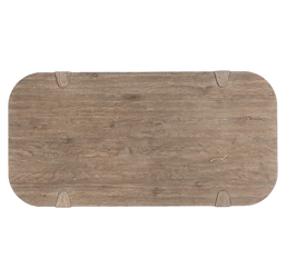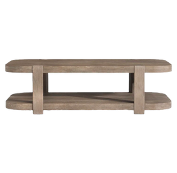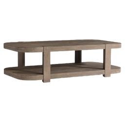 Shaped legs notch into the top and lower shelf of the Tribeca cocktail table, appearing to wrap over the top for a unique design. Rounded corners add a modern take on this traditional look. Clean lines and a rustic Aurum finish offer rich character and relaxed style.