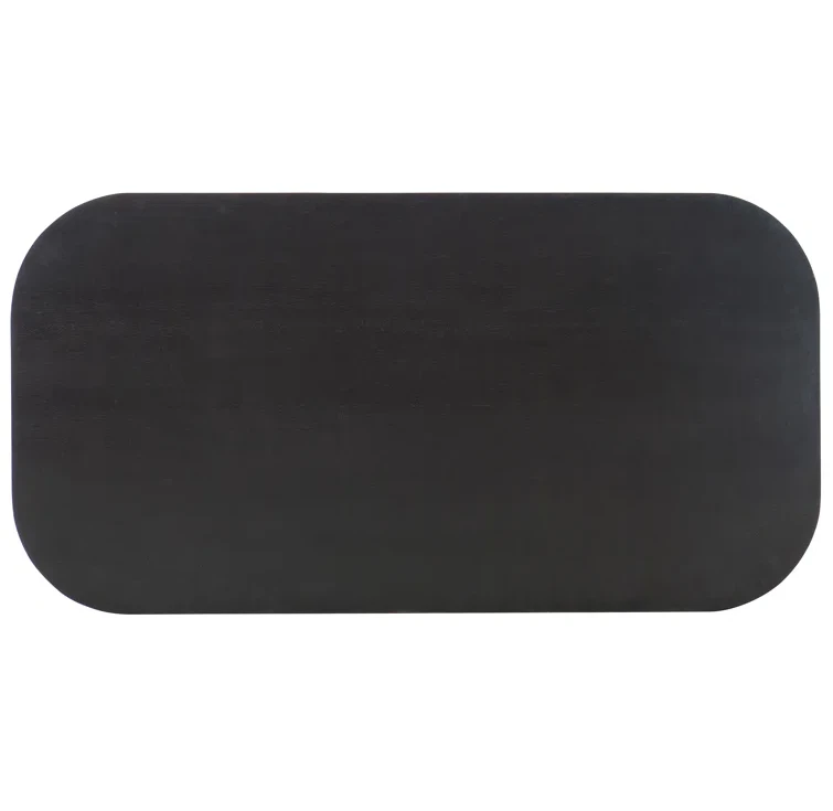 Crafted of mahogany solids, the Eden Coffee Table is modern, tactile, and crisp. The rectangle-shaped table with rounded corners has a ribbed motif and black finish