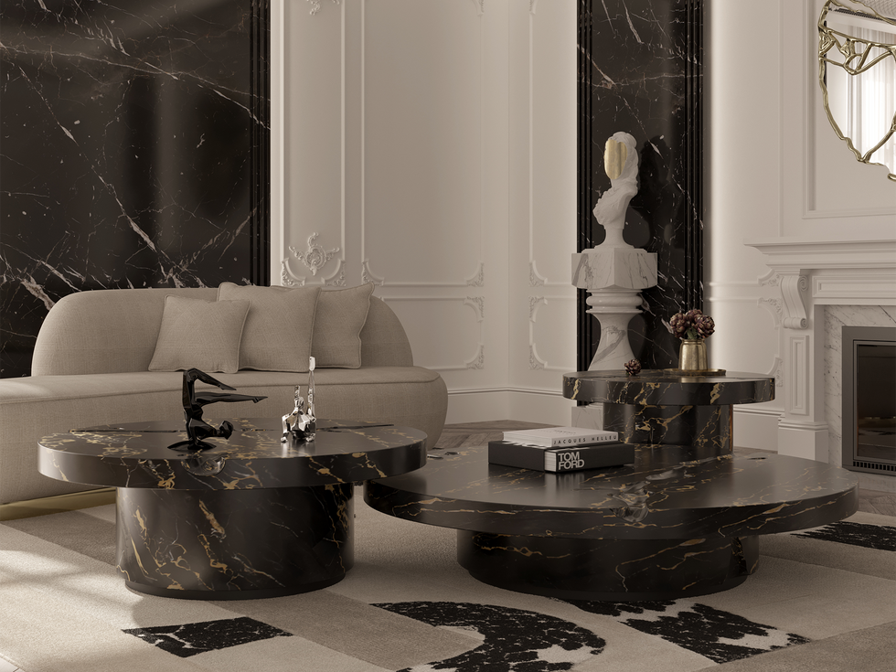 The Empire is a set of three exquisite center tables. Much like the great empires that endure centuries, these tables embody the spirit of rising after a fall, discovering true strength through their enduring design. Crafted with meticulous detail, the hand-carved cracks in the luxurious marble tell a story of determination.
