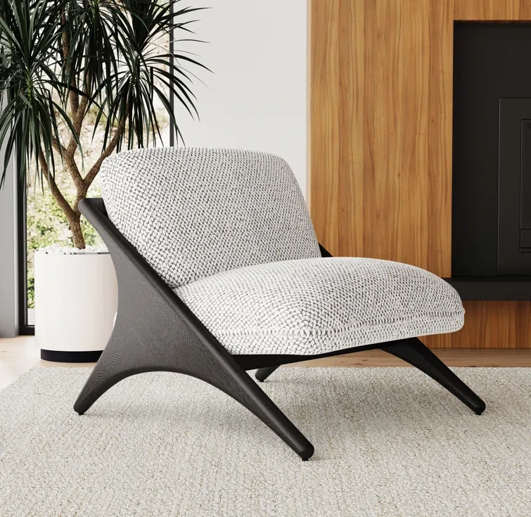 Unapologetically bold, this accent chair features a striking frame shape and dimensional black and white upholstery. Ideal for a modern setting, this chair includes a clean, minimalist palette that suits any color scheme.