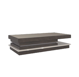 Balancing beauty and functionality, this tiered cocktail table builds on basic principles of design and architecture. Stacked slabs in a mix of materials and finishes lend structure and integrity, with alluring details like a frosted bronze glass top and metal trim in smoked stainless steel paint. Features hidden casters for ease of movement.