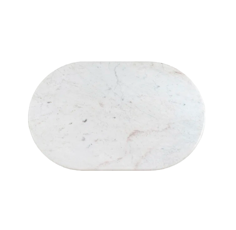 Column starter. This modern coffee table combines artful design with functionality, creating a statement piece for your living space. The oval tabletop is made from genuine polished white marble, while the base showcases a scalloped gray and white marble pattern that adds texture and visual interest.