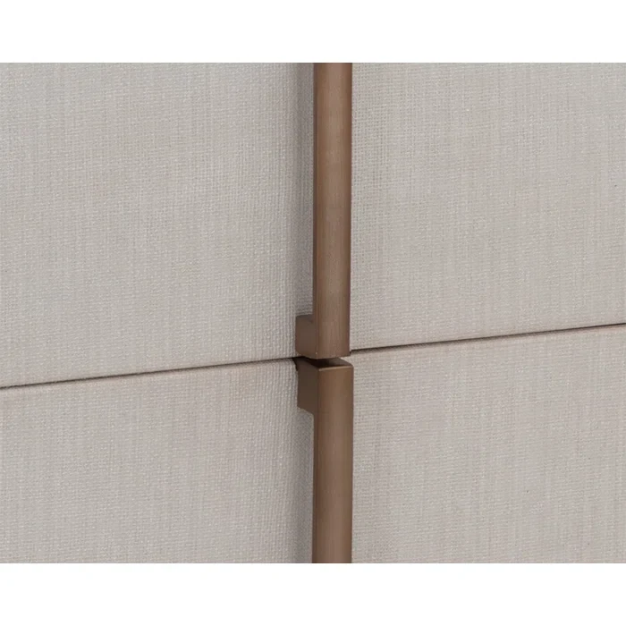 Made from grey-finished ash with leather-wrapped hardware, wide-scale and sculptural details reflect the Brazilian midcentury inspiration behind this dual-drawer nightstand.